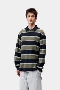 The L/S Malone Rugby Shirt is made in a loose fit from heavyweight, textured cotton waffle. It features a flatknit collar, a buttoned placket, and ribbed cuffs. An embroidered Script Logo appears on the chest.