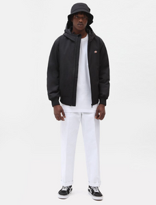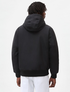 Here comes your new, practical favorite! The New Sarpy casual jacket has a drawstring hood, ribbed hem and cuffs and is made of water-repellent polyamide. It's a simple garment with two zippered pockets and the Dickies logo on the front.