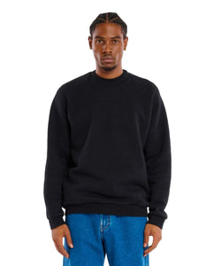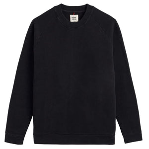 Homecore Terry Black crewneck sweatshirt is crafted from Terry fleece, blending comfort with distinctive design. Featuring raglan sleeves for optimal freedom of movement, this sweatshirt offers a brushed fleece finish with anti-pilling treatment, ensuring both softness and durability. The ribbed cuffs and hem are made with a unique heathered diagonal knit pattern, adding an elegant touch. A red topstitch runs along the spine, symbolizing body balance and representing the center point of your well-being.